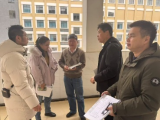 田颖老师(右五)与图书管理员们亲切交谈